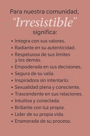 La irresistibilidad no es un disfraz que te pones, sino la luz que emerges cuando descubres tu valor, abrazas tu autoestima y conectas con tu sensualidad de manera auténtica.